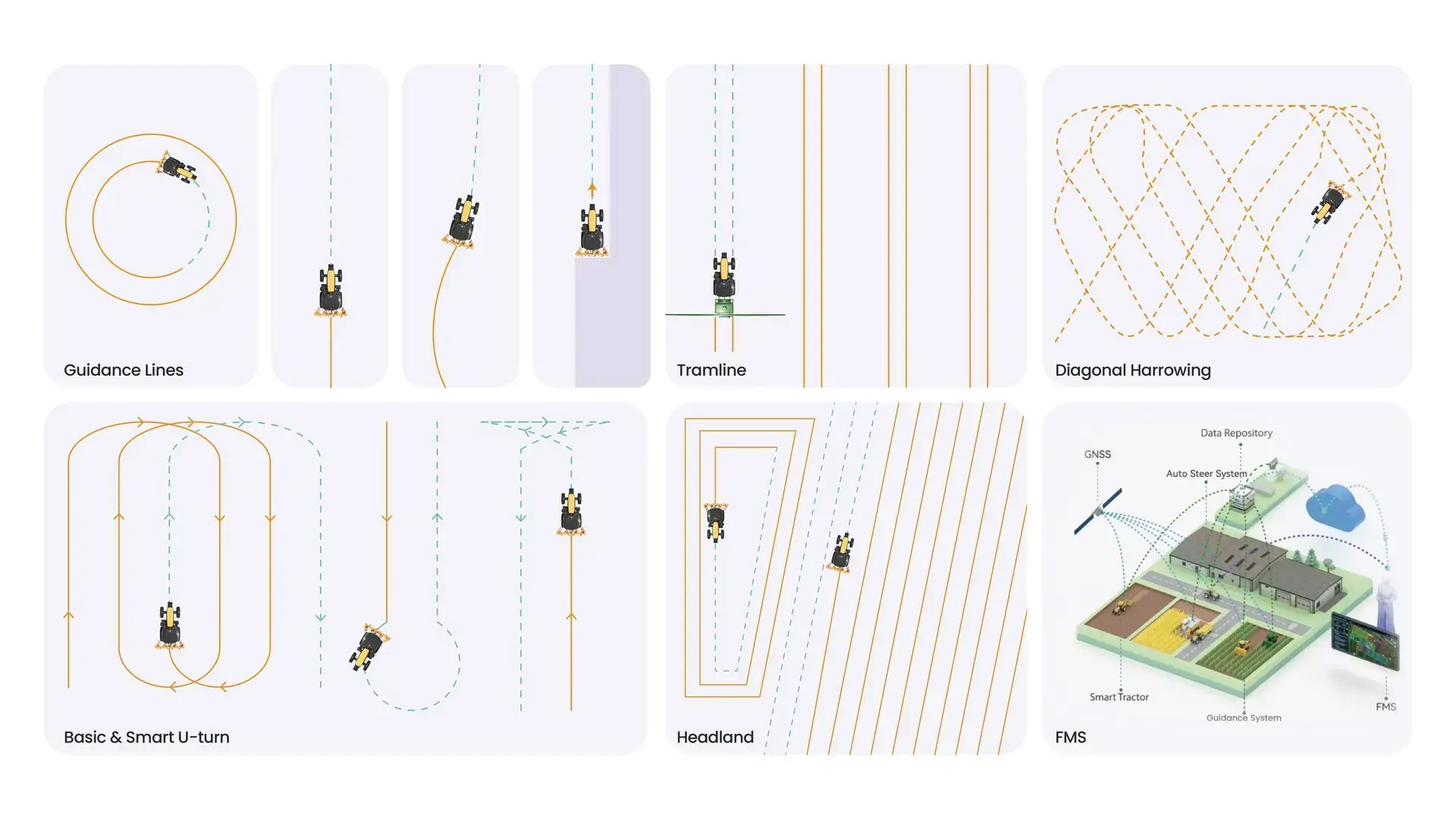 Avec le Smart U-turn , l'AT2 Max planifie le chemin optimal pour tourner à la fin des rangées, réduisant la distance parcourue jusqu'à 30 % par rapport aux virages manuels. Cela améliore votre efficacité opérationnelle globale tout en réduisant la consommation de carburant.